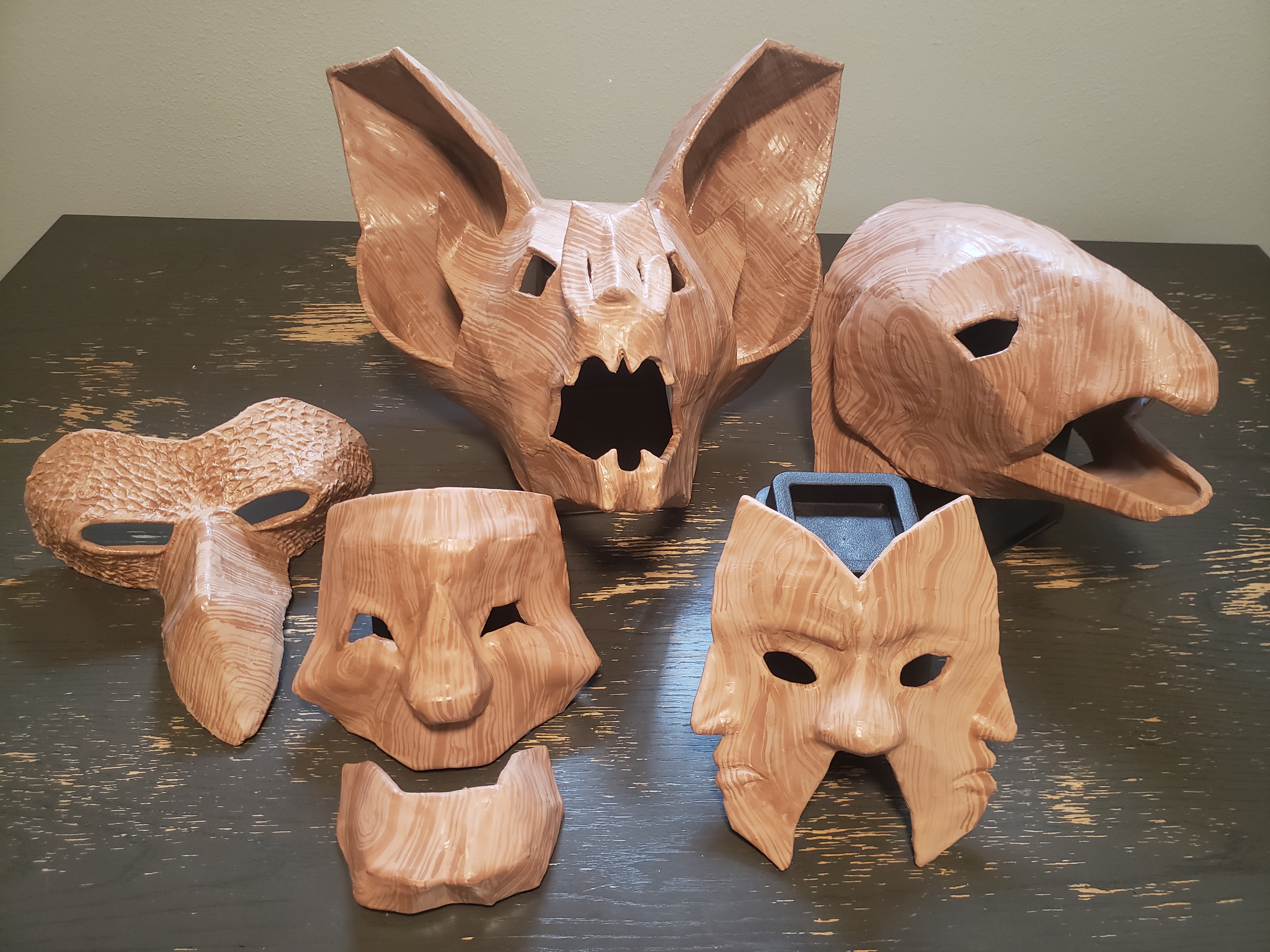 Very early on in my costume design for the haunted house, I decided I wanted all of the characters to wear masks. Since I was working with a very limited budget, I figured it was an easy way to make all of the characters look unsettling, while also making them all somewhat cohesive as a group. In my head, these masks represented how "lost" each of the characters were in the woods. The more lost they were, the less human they became, and the mask would change to reflect that. I kind of imagined that each character was once a lost human or soul who slowly became corrupted by the forest, at which point they would be given a mask—made from they very trees they were trapped within—to live out the rest of their lives as the role they were given. Did any of this make it into the writing or story? Not really. But it helped to give me some direction with the look of each character. Problem was, I've never made anything like this before.